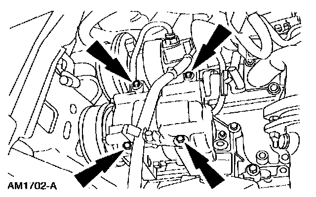 ^ Apply Pipe Sealant with Teflon (R) D8AZ-19554-A or equivalent meeting Ford specification WSK-M2G350-A2 to the threads of the A/C manifold and tube to compressor retaining bolt.