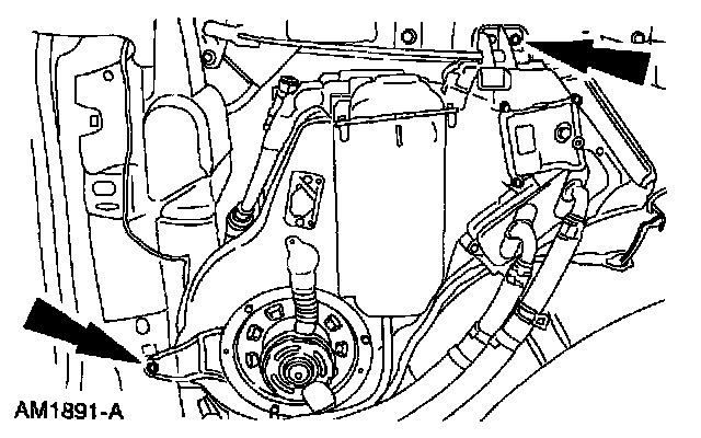 CAUTION: Do not spill any of the remaining coolant or refrigerant oil in the vehicle when removing housing.