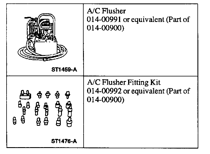 ^ This equipment is designed to be used only with the Ford A/C System Flushing Solvent F4AZ-19579-A. Use of other solvents can result in personal injury or damage to the vehicle and the flusher.