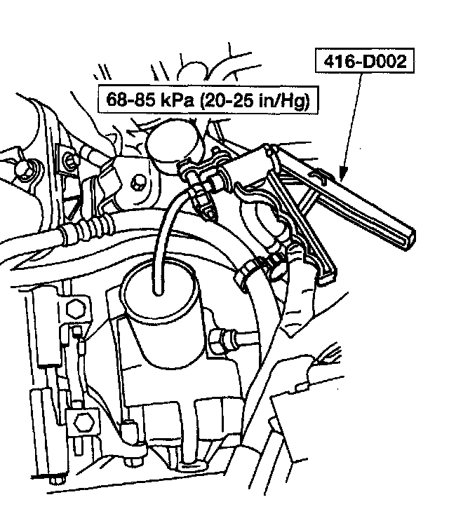 4. Using the special tool, apply maximum vacuum and maintain it for a minimum of three minutes with the engine speed set at idle.