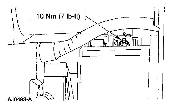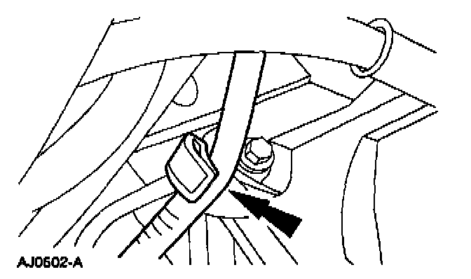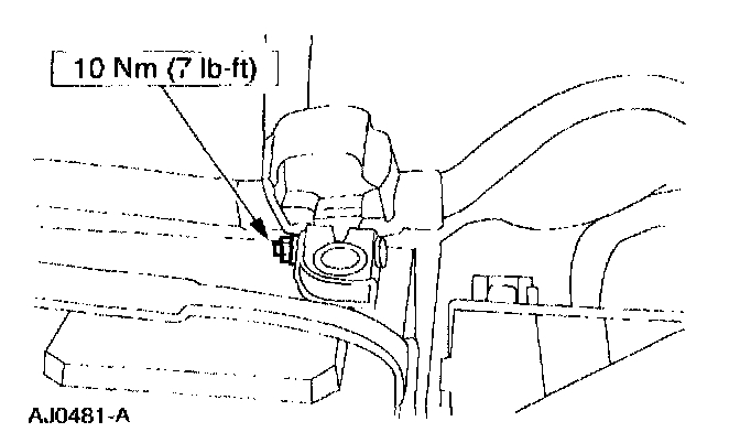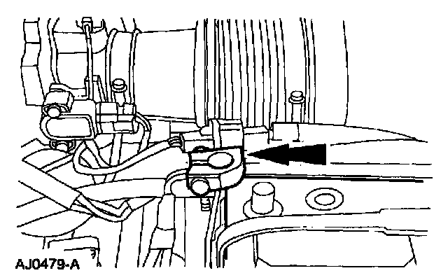 9. Remove the battery cable harness retaining bracket nut. Remove the bracket and the engine negative ground cable from the stud.