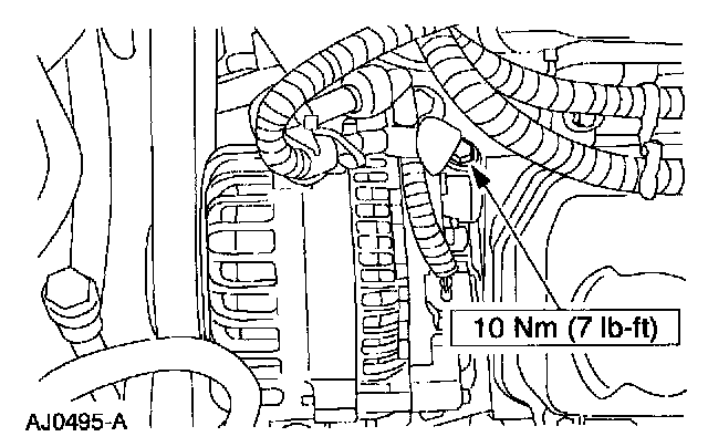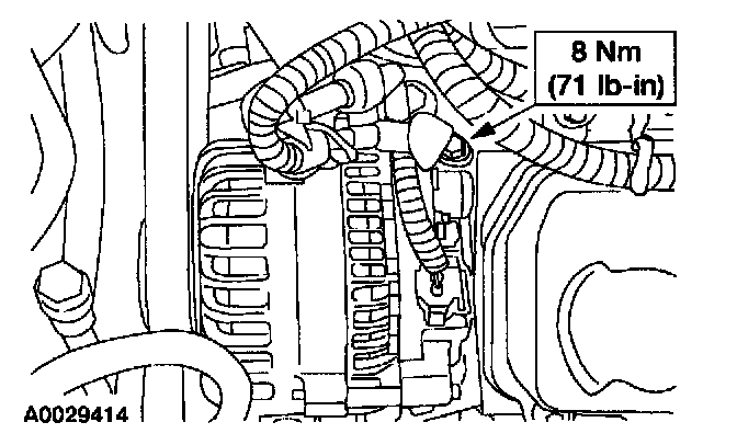 4. Remove the generator B+ stud nut and remove the cable harness eyelet.