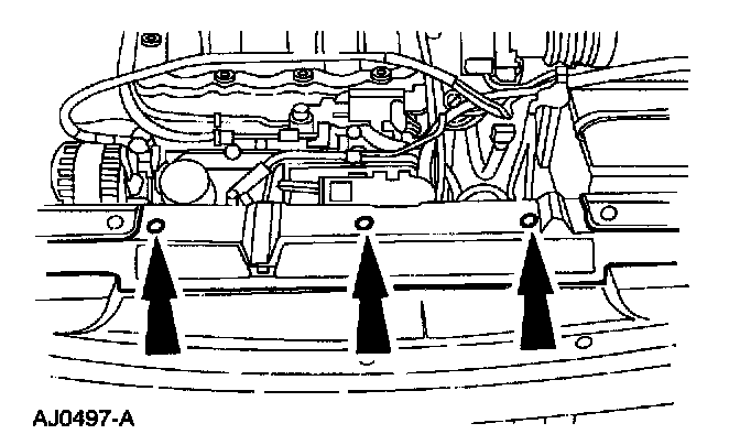 6. Remove the pin-type retainers and remove the upper radiator support sight shield.