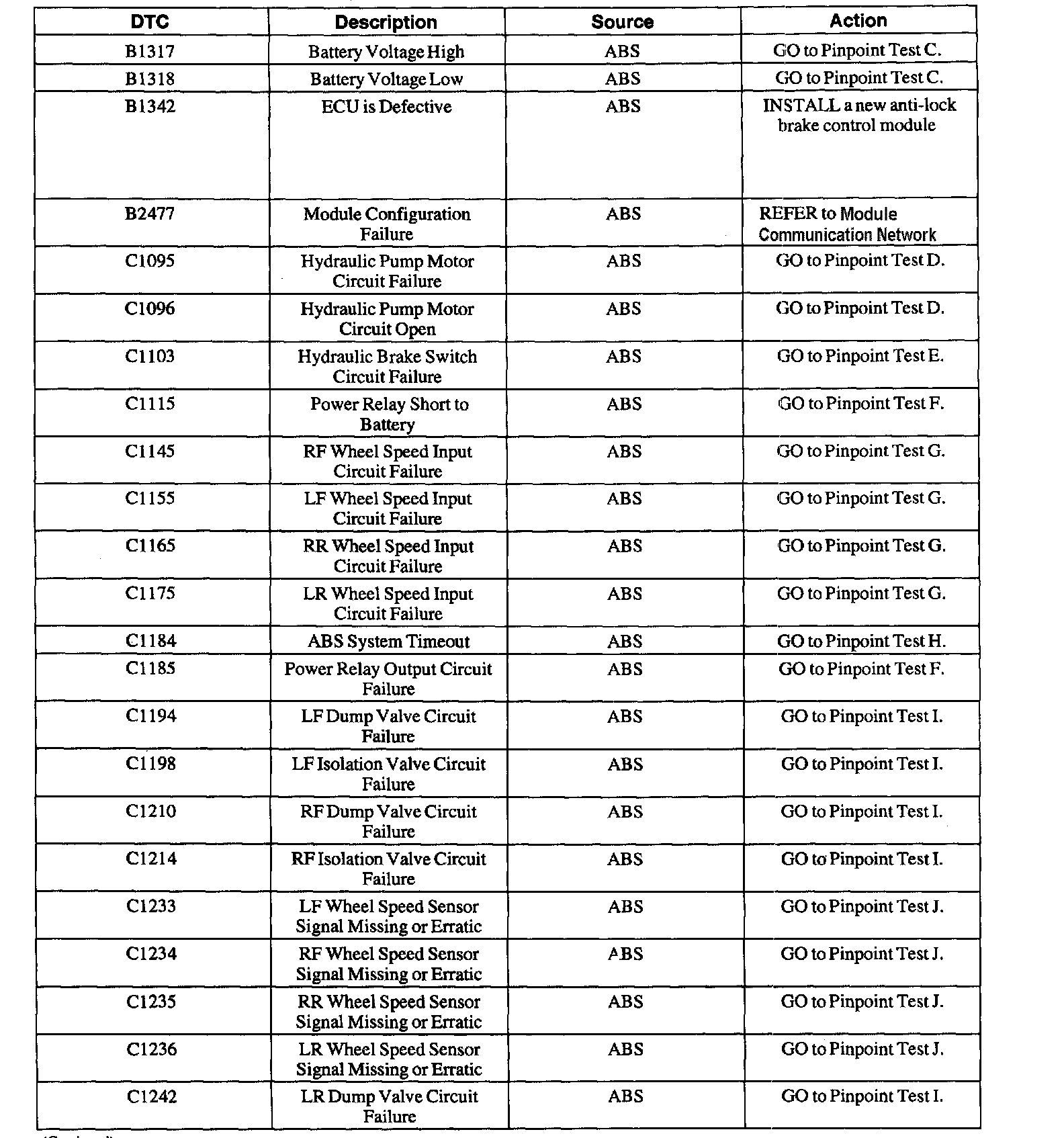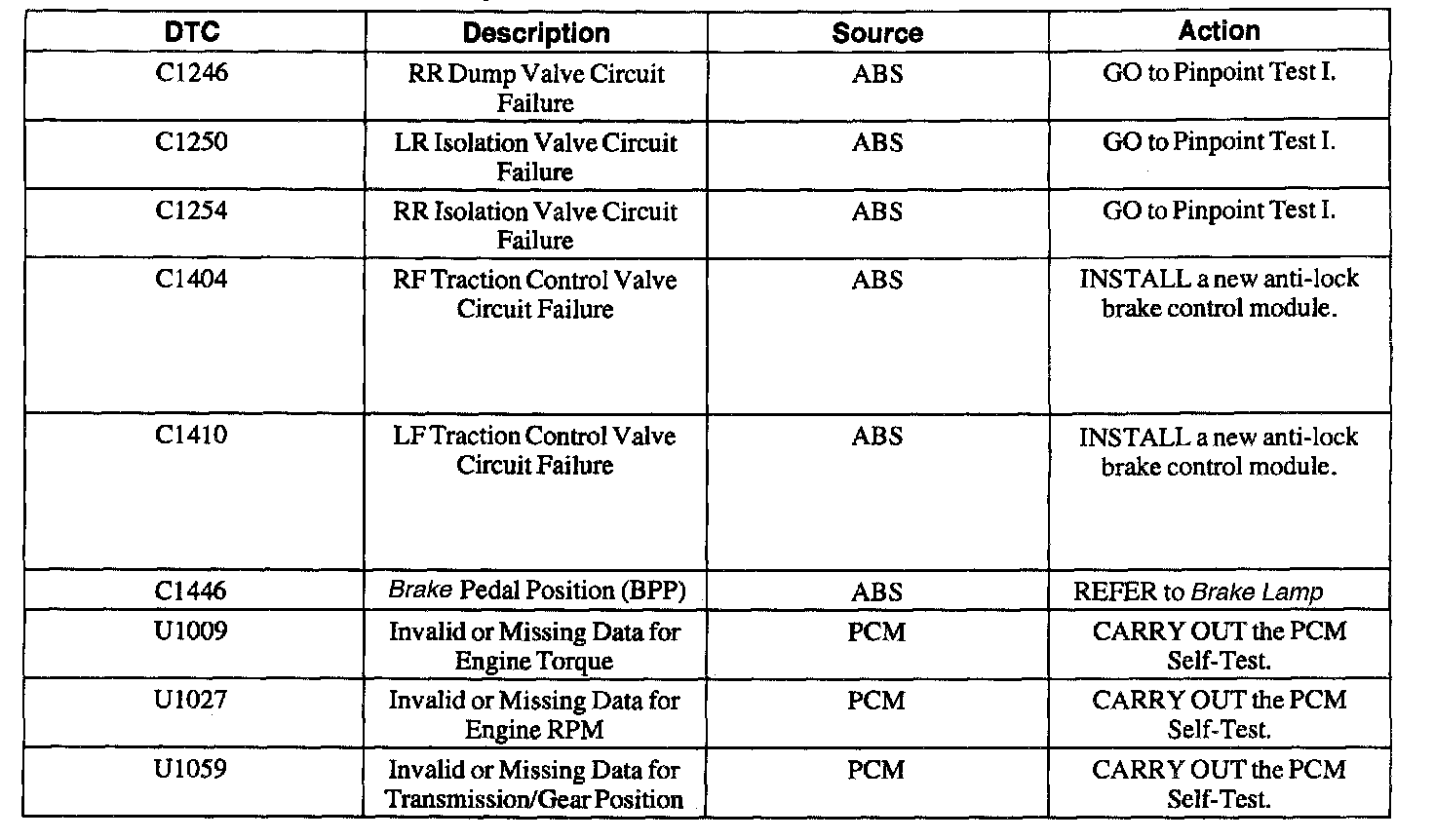 Diagnostic Trouble Code Descriptions
