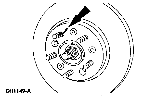 2. Mark a wheel stud and mark the corresponding brake disc lug hole.
