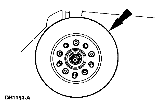 Note: If the brake disc cannot be removed easily, apply Rust Penetrant and Inhibitor F2AZ-19A501-A or equivalent meeting Ford specification ESR-M99C56-A on brake disc to wheel hub mating surfaces.