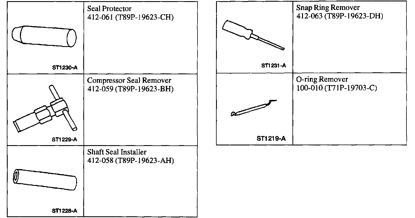 2. Place the shaft seal on the special tool. Lubricate the shaft seal and with PAG Compressor Oil YN-12-C, F7AZ-19589-DA or equivalent meeting Ford specification WSH-M1C231-B.