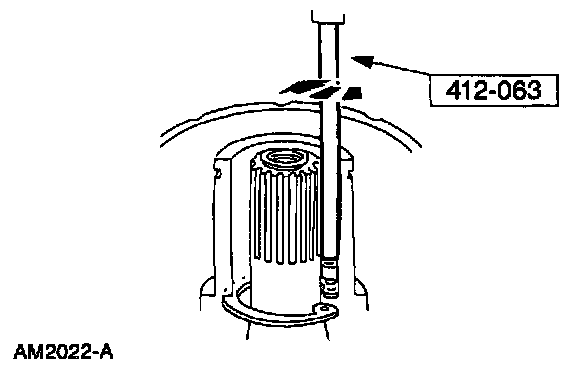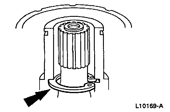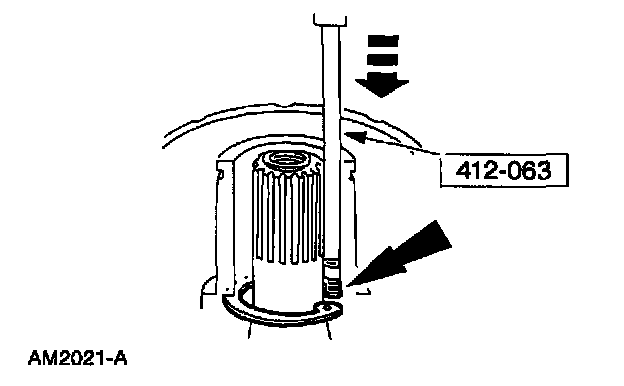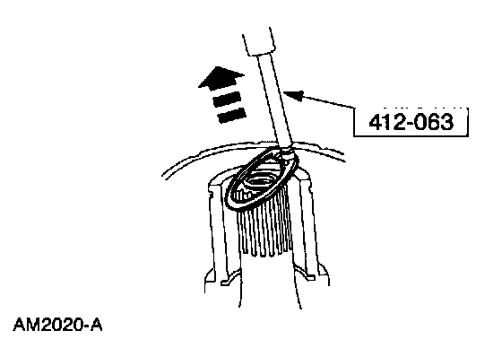 6. Pull the special tool up quickly while keeping the tool shaft against the side of the nose opening and remove the snap ring.