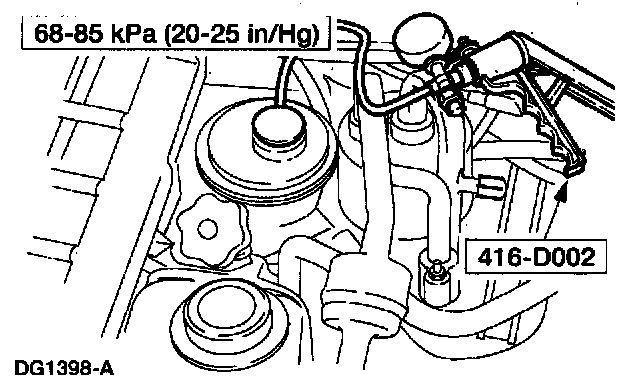4. Using the special tool, apply maximum vacuum and maintain it for a minimum of three minutes with the engine speed set at idle.