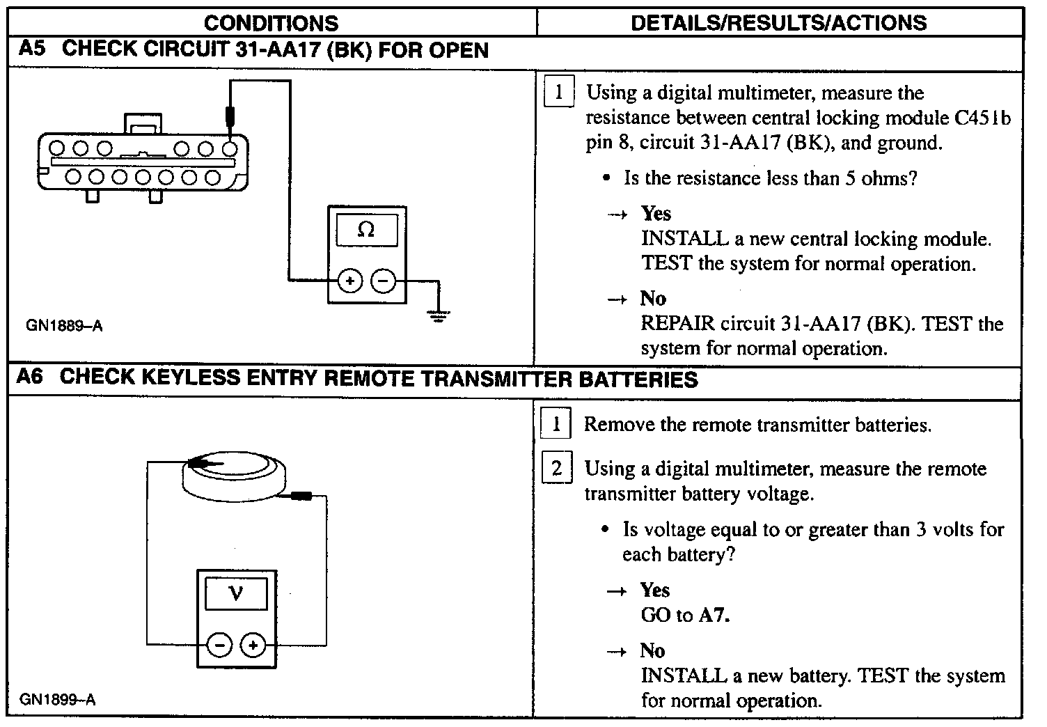 Test A: Doors Do Not Lock/Unlock Using The Remote Transmitter