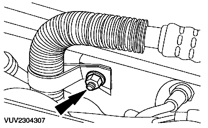 2. Remove the power assisted steering hose retaining nut.