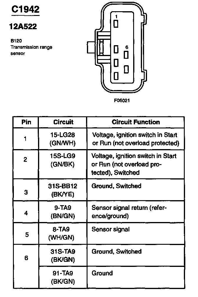Transmission Position Sensor/Switch: Diagrams
