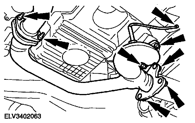 8. Remove the front exhaust pipe (seven nuts).