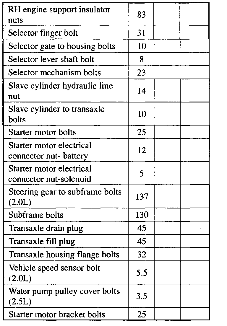 Torque Specifications