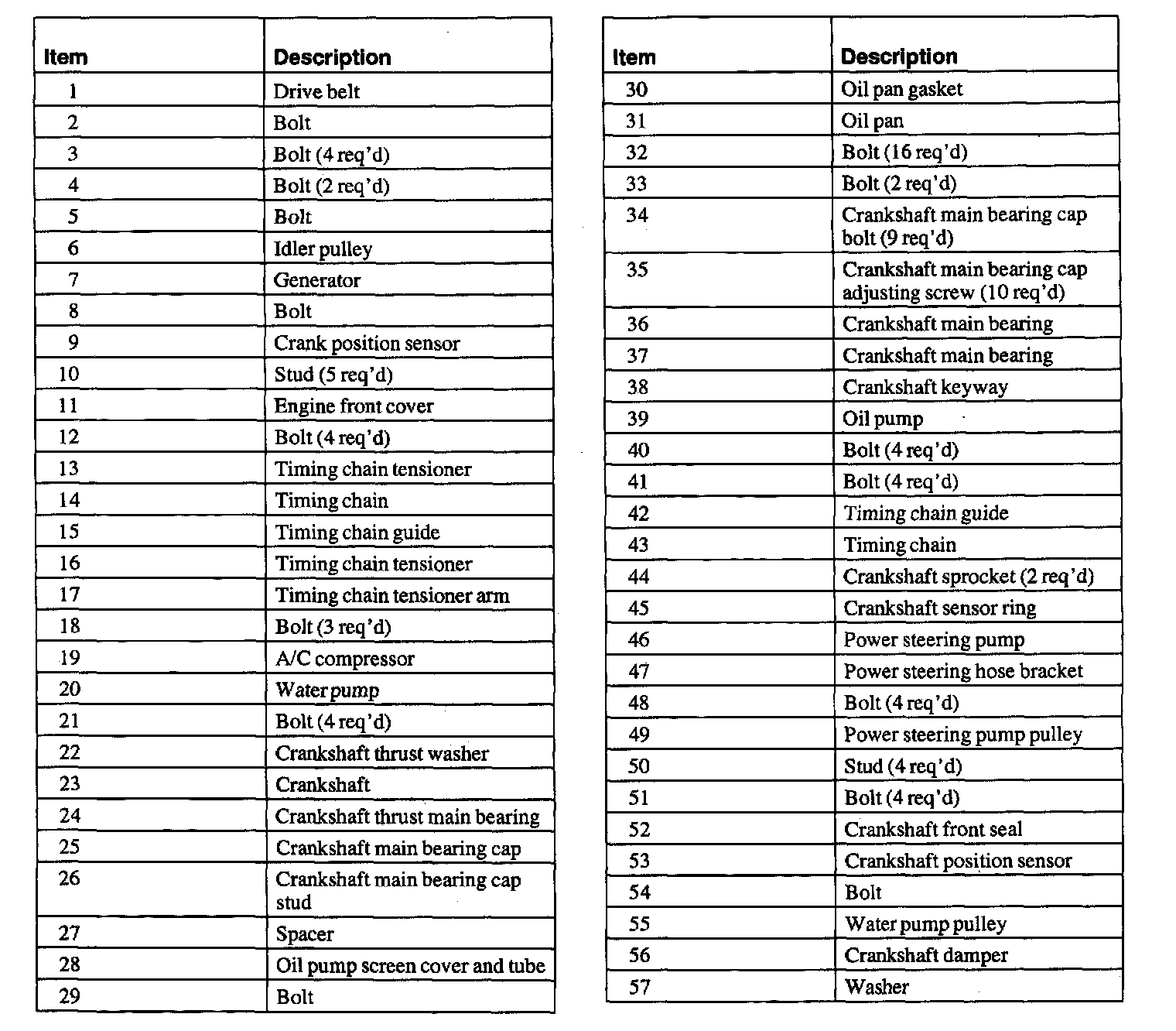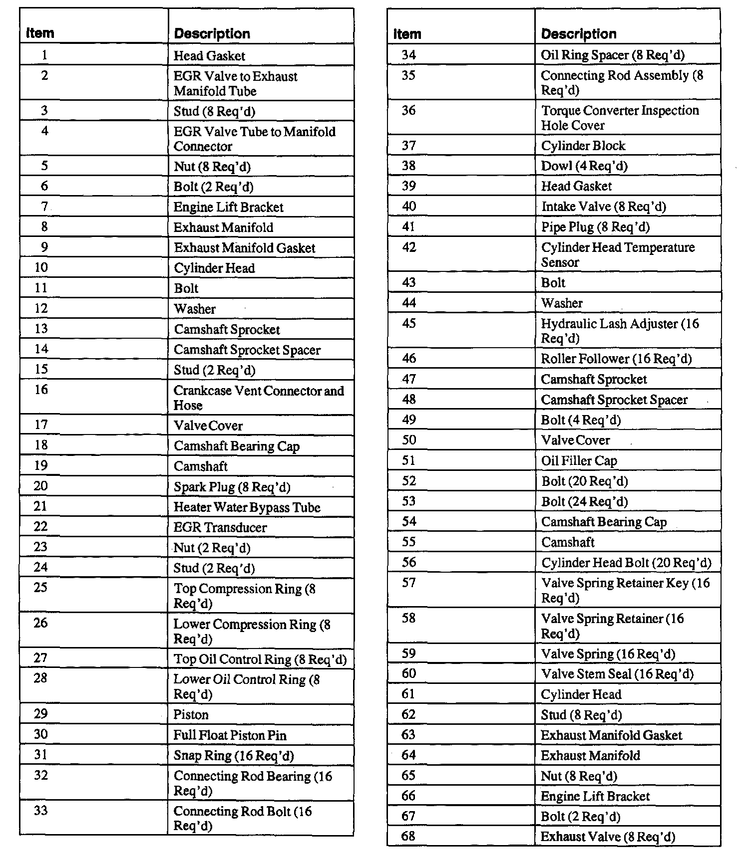 The basic engine components consist of: