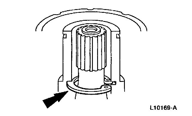 5. Install the shaft seal snap ring with the sharp edge facing up.
