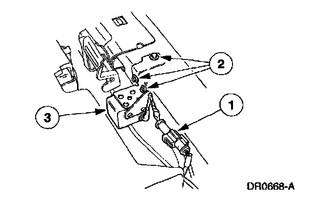 ^ VEHICLE SENSOR ORIENTATION IS CRITICAL FOR PROPER OPERATION. IF A VEHICLE EQUIPPED WITH AN AIR BAG SUPPLEMENTAL RESTRAINT SYSTEM (SRS) IS INVOLVED IN A COLLISION, INSPECT THE SENSOR MOUNTING BRACKET AND WIRING PIGTAIL FOR DEFORMATION. REPLACE AND PROPERLY POSITION THE SENSOR OR ANY OTHER DAMAGED SUPPLEMENTAL RESTRAINT SYSTEM (SRS) COMPONENTS WHETHER OR NOT THE AIR BAG IS DEPLOYED.