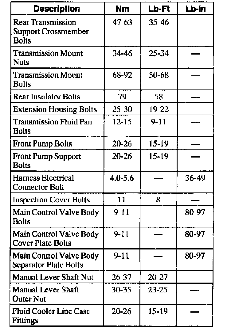 Torque Specifications