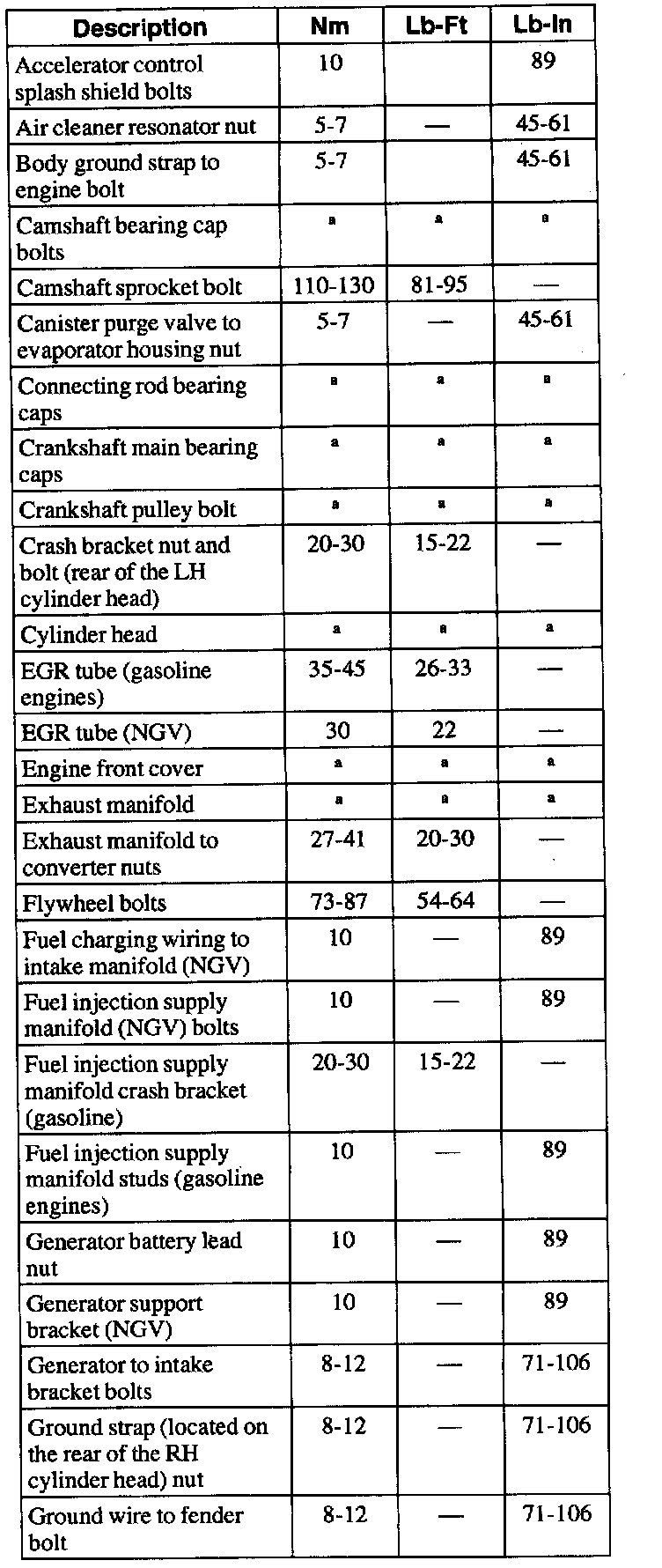 General Torque Specifications