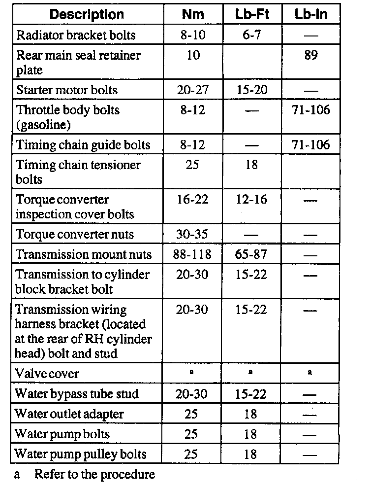 Torque Specifications