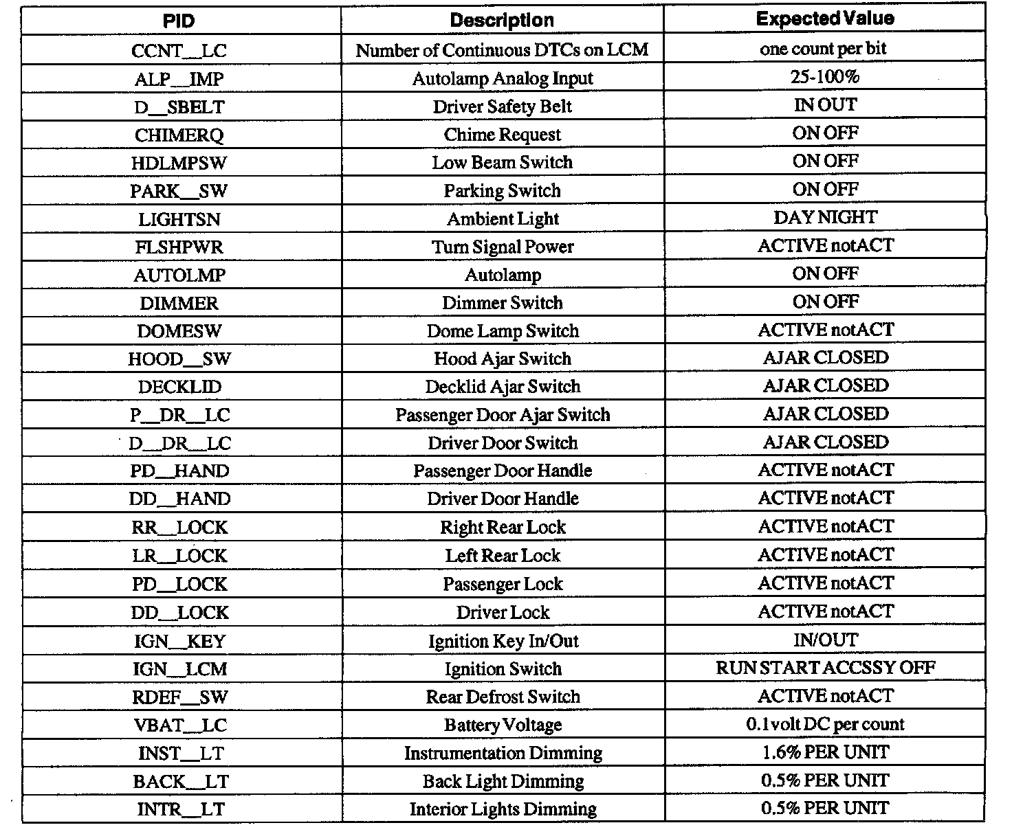 Lighting Control Module (LCM) Parameter Identification (PID) Index