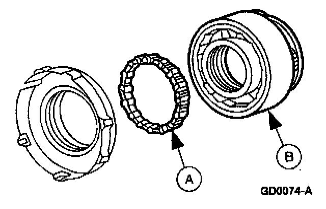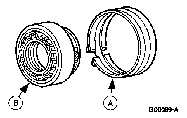 The (A) planetary (low) one-way clutch is a roller clutch that holds the (B) planetary gearset in first gear, O/D and D ranges. During automatic coasting downshifts into first gear (O/D and D ranges), the planetary one-way clutch freewheels so there is no engine braking.