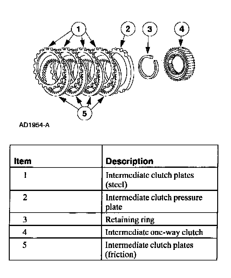 The intermediate clutch works with the intermediate one-way clutch to hold the reverse sun gear stationary in second gear. The intermediate clutch remains applied in third and fourth gears, but does not transmit power.