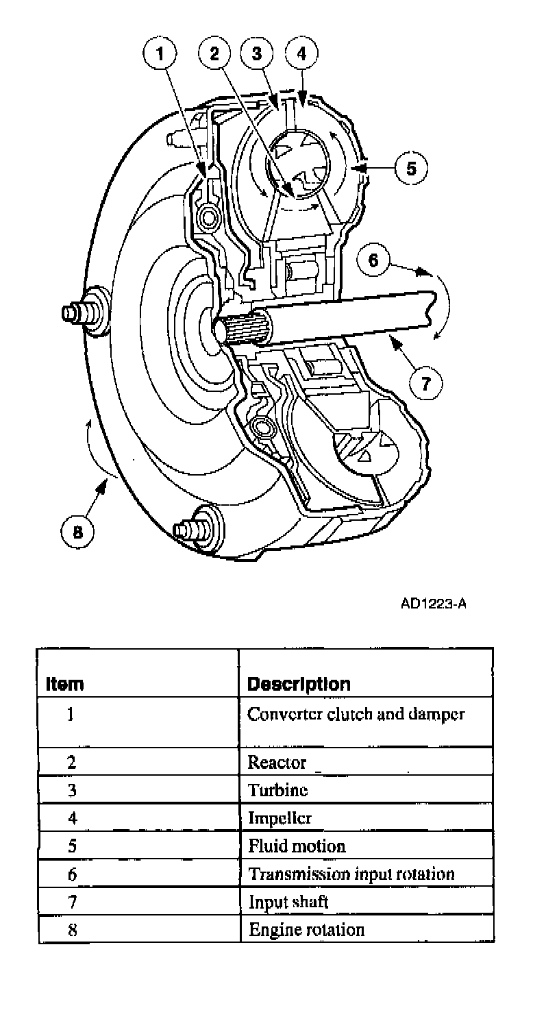 The torque converter transmits and multiplies torque. The torque converter is a four-element device:- impeller assembly