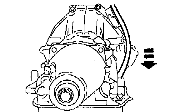 1. CAUTION: During this move, to avoid damage, do not allow the transmission to get into a nose-down position as this will cause the torque converter to move forward and disengage from the pump gear. The converter housing is piloted into position by dowels in the rear of the engine bluely The torque converter must rest squarely against the flywheel. This indicates that the converter pilot is not binding in the engine crankshaft.