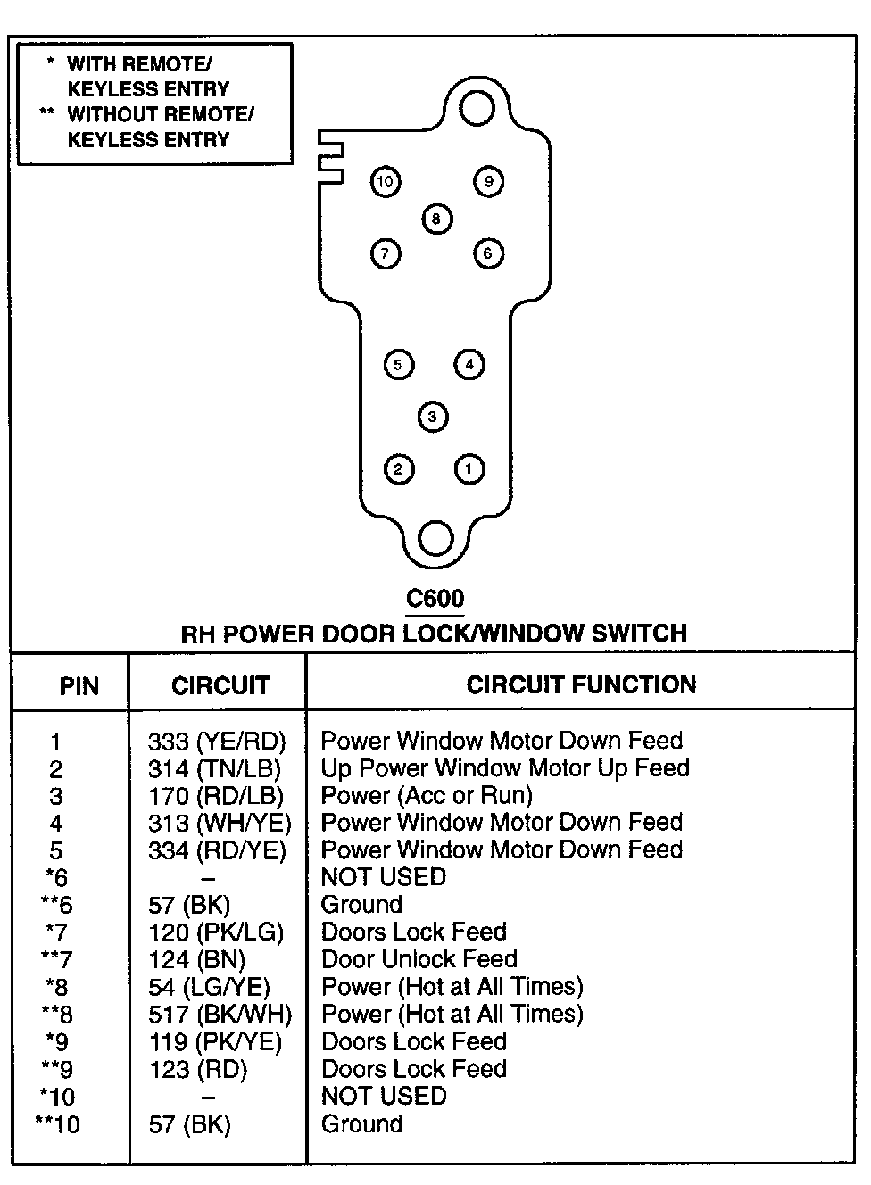 RH Power Door Lock/Window Switch