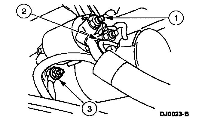10. Remove the transmission cooler line/primary battery cable bracket nut.