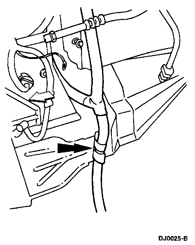 11. Pull the primary battery cable assembly through the engine support crossmember under the vehicle.