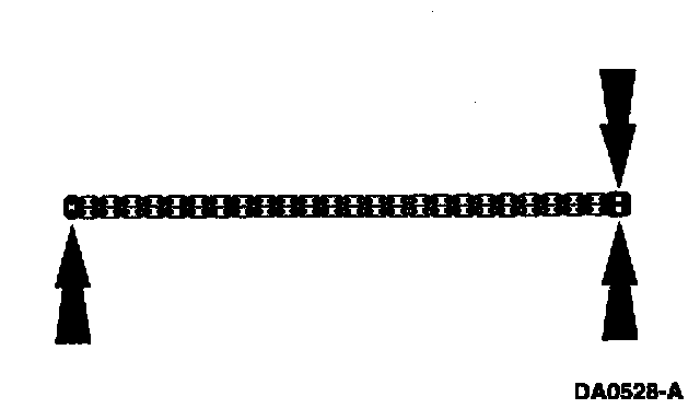 If copper links are not visible, mark two links on one end and one link on the other end, and use as timing marks.