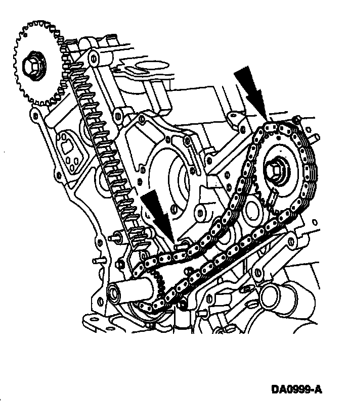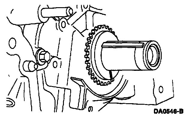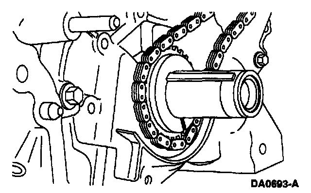 - Install the outer crankshaft sprocket and timing chain with the long hub of the crankshaft sprocket facing inward.
