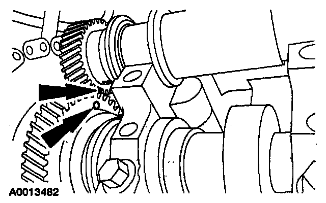 Align the chalk mark on the balance shaft with the camshaft timing mark as shown.