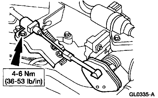 ^ Move the spring tab away from the speed control cable end to release the cable from the actuator. Remove the speed control actuator cable.