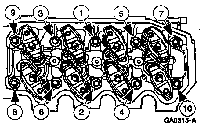 Note: Lubricate the cylinder head bolts with Super Premium 5W30 SAE XO-5W30-QSP or equivalent meeting Ford specification WSS-M2C153-G prior to installation.