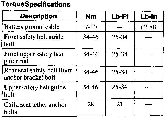 Torque Specifications: