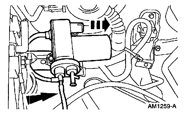 3. Disconnect the vacuum hose and remove the vacuum pump and bracket.