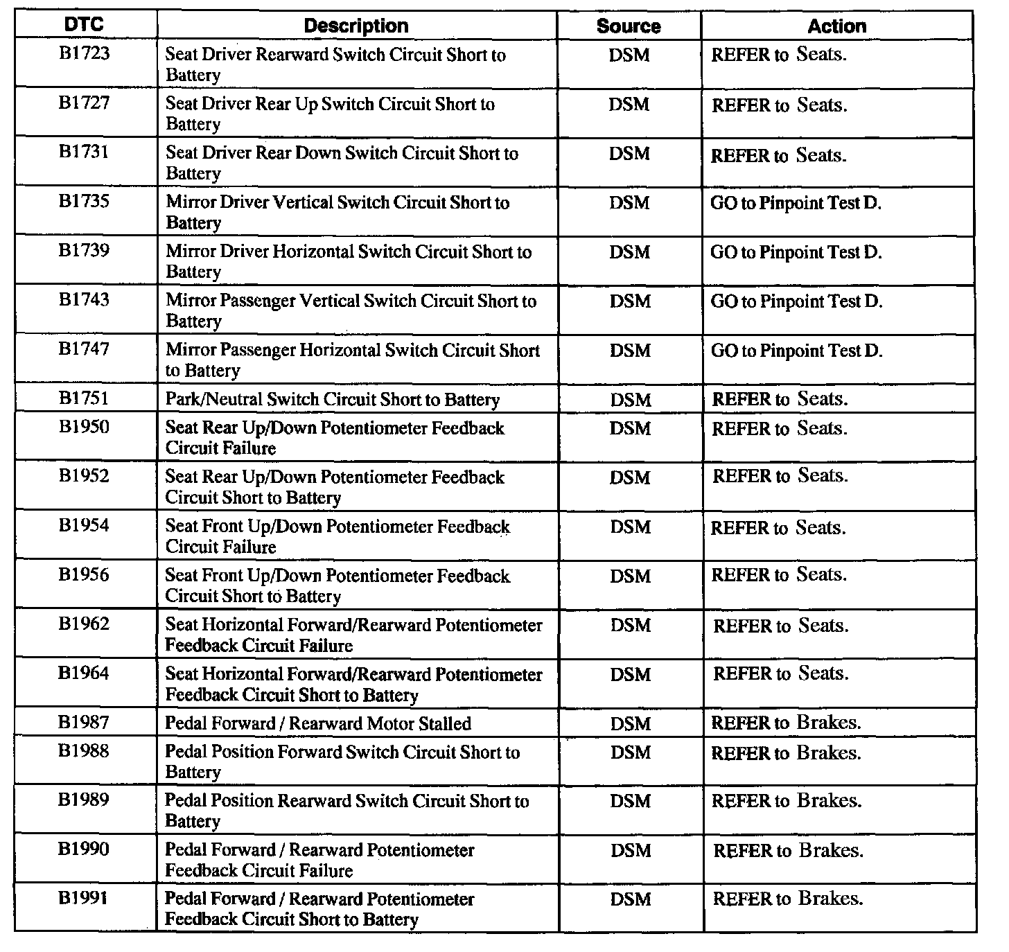 Diagnostic Trouble Code Descriptions