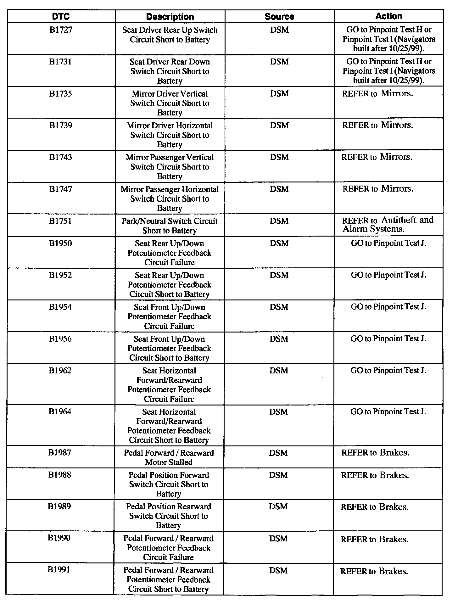 Diagnostic Trouble Code Descriptions