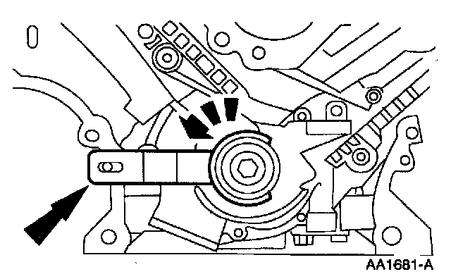 16. Note: If necessary, adjust the camshaft sprocket slightly to obtain timing mark alignment with the Camshaft Positioning Tool.