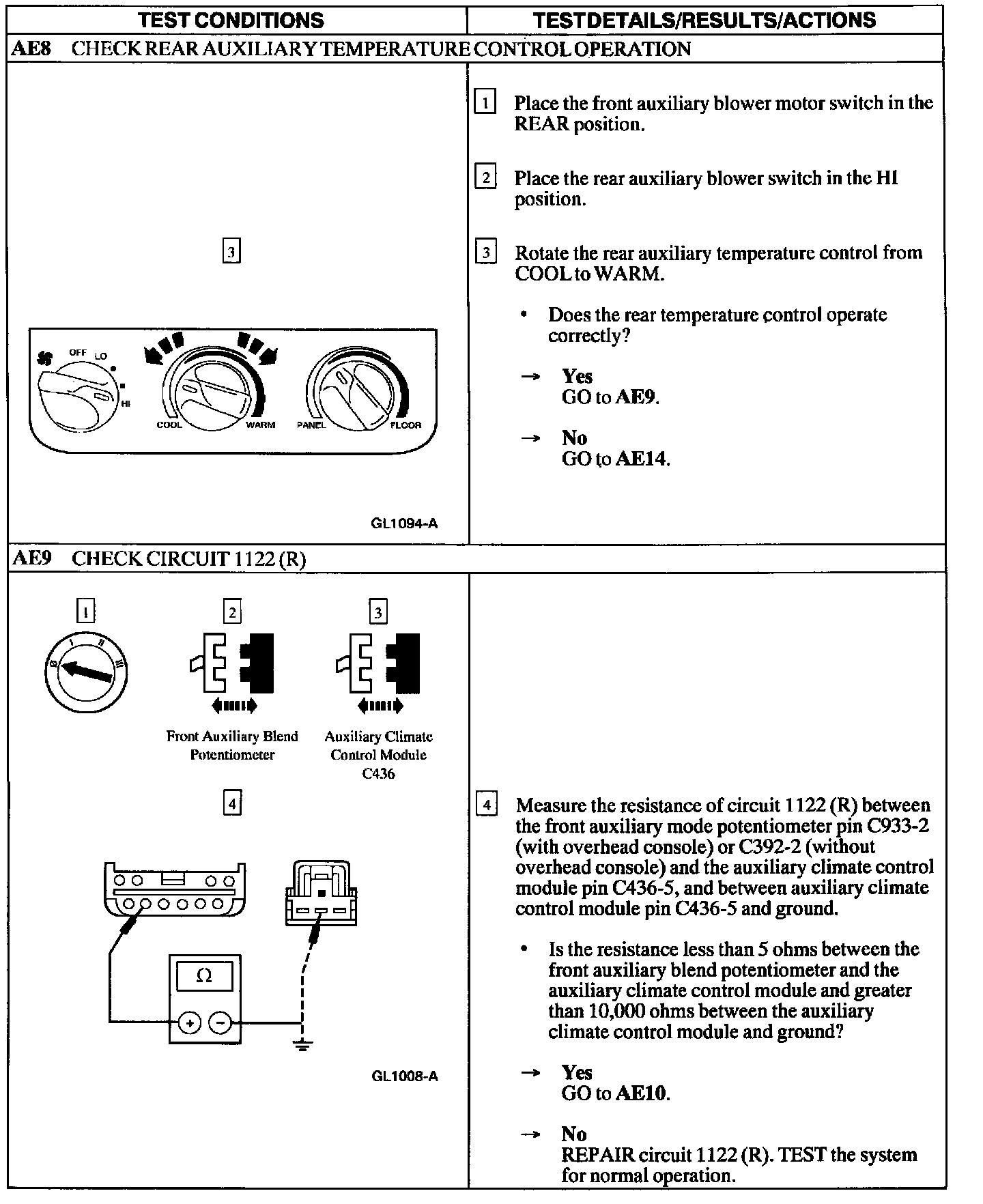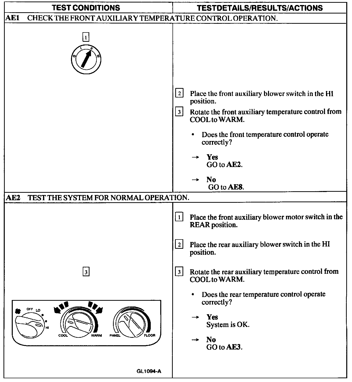 Tests AE: Temperature Control Does Not Operate Using The Front/Rear Auxiliary Climate Controls
