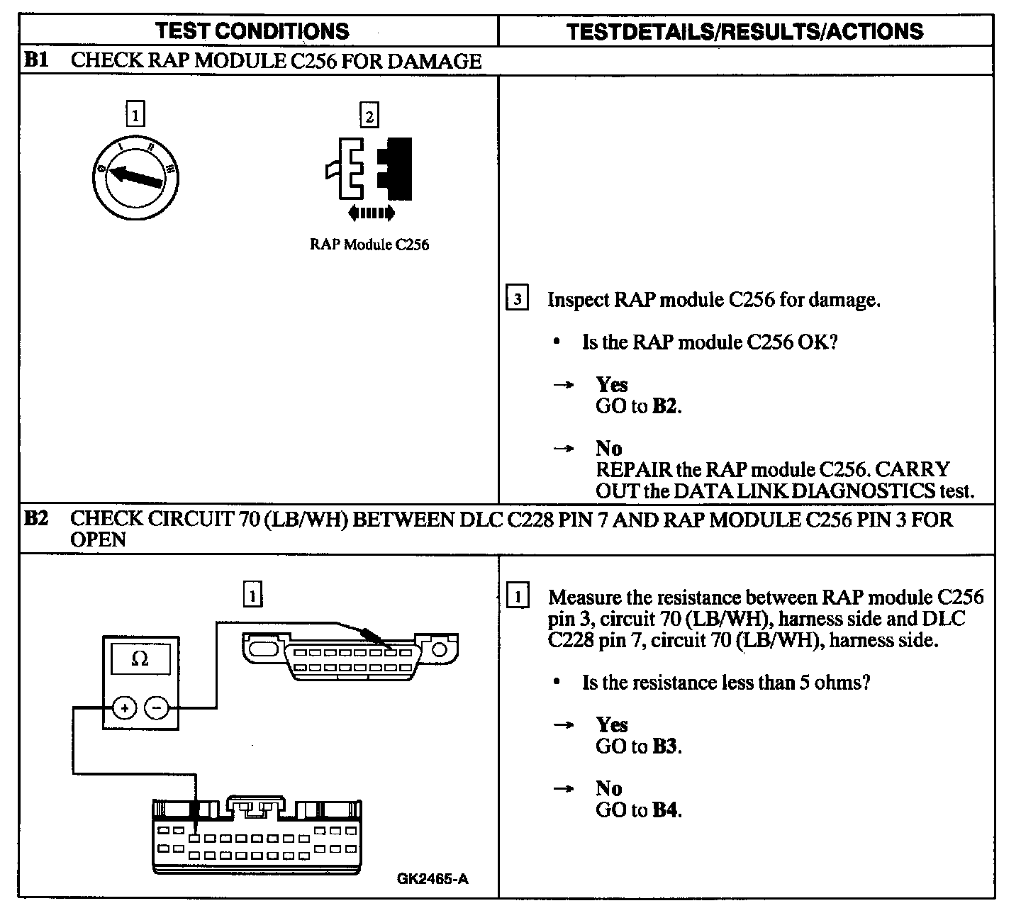Test B: RAP Module Does Not Respond to the Scan Tool