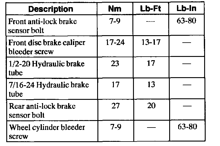 Torque Specifications