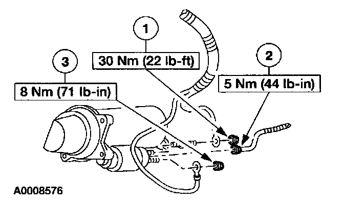 6. Disconnect the starter motor connections.