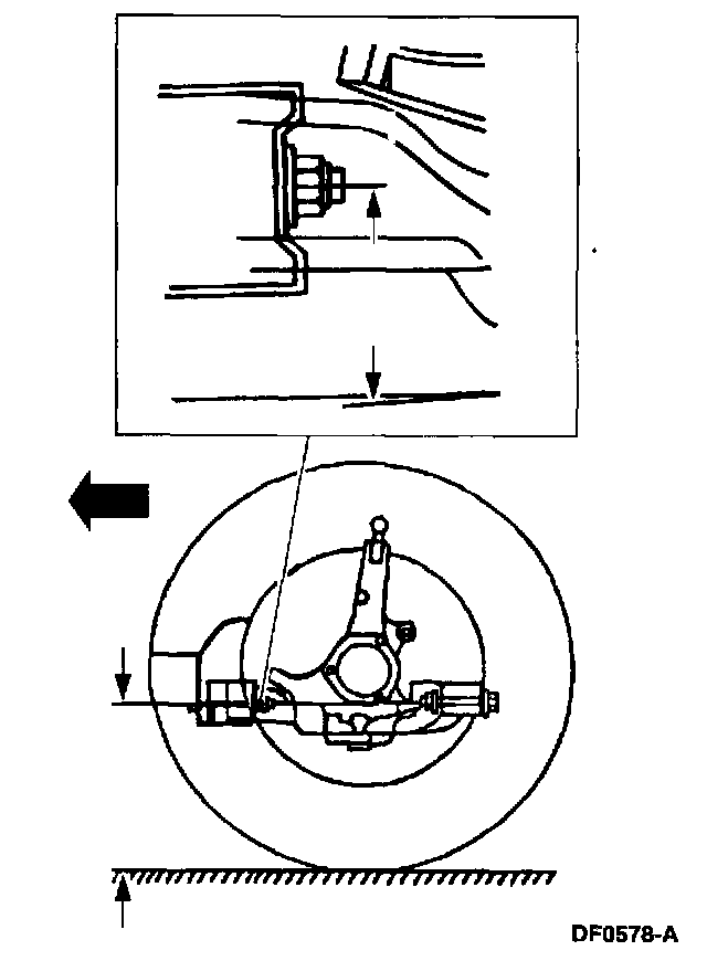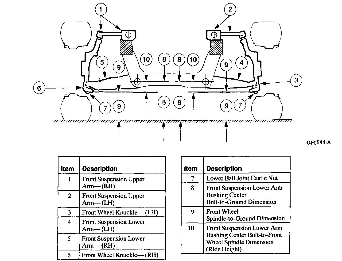 5. To obtain the front suspension ride height, subtract the measurement in Step 3 from the measurement in Step 2.