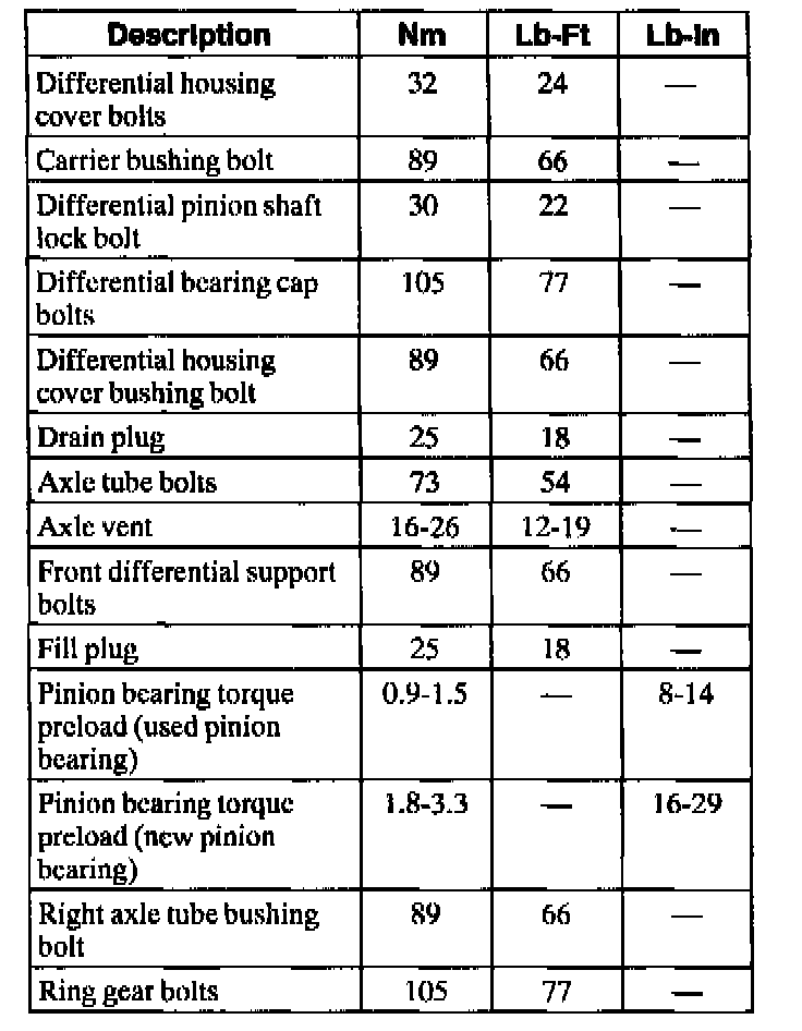 Torque Specifications