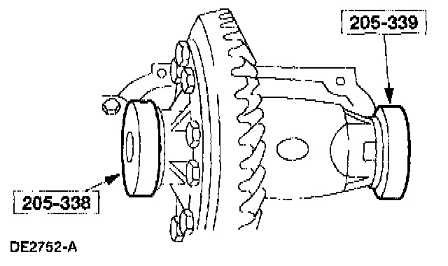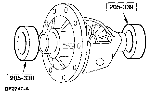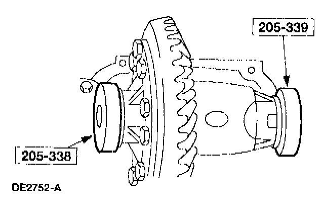 45. CAUTION: Never attempt to drive the differential bearing shim in place. Permanent damage to the machined axle housing surfaces can occur.