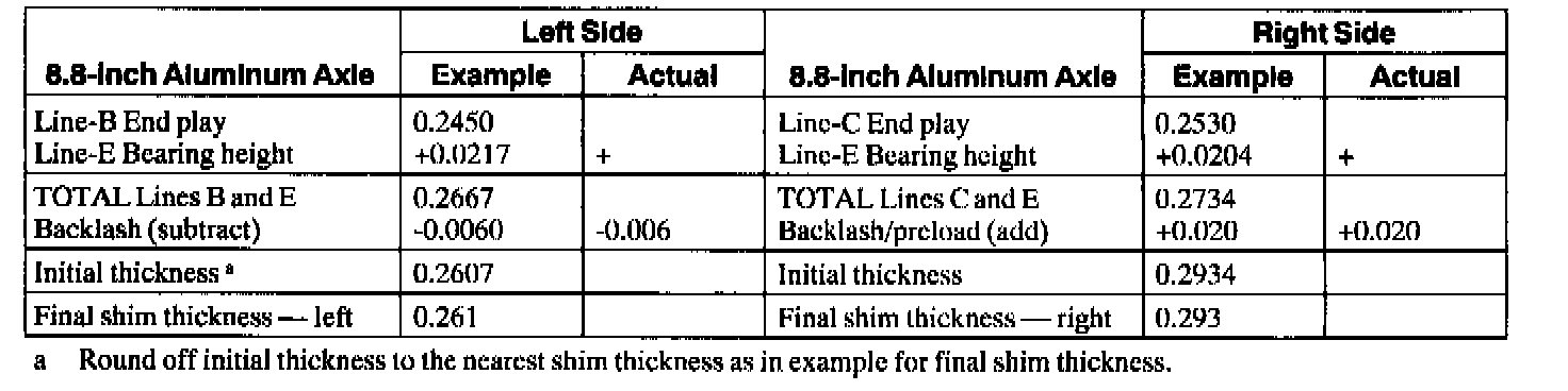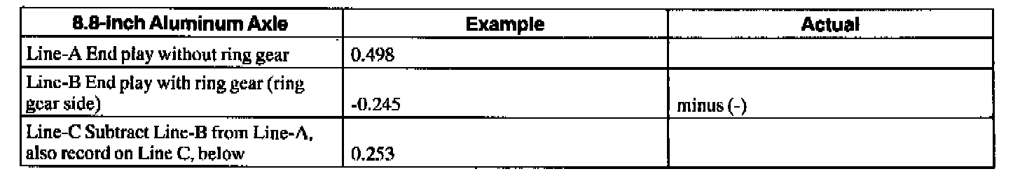 4 Measure the total end play and record the reading on the Differential Bearing Shim Selection Procedure Worksheet, Line A, in this procedure.